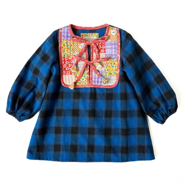hum humの定番になっている。人気のインド綿ブラウス。このワンピースバージョンもあったら絶対に可愛いはず!!ということで製作し始めたインド綿ワンピース。個性の違った6種類のインド綿をミックスしています。 胸元のヨーク部分は薄く綿を入れて、ひと針ひと針ハンドステッチを施し、キルティング加工にしています。この一手間により立体感が生まれ、ハンドステッチならではの味わいもプラスされて、特別感のある仕上がりに。 裾の切り返しにはギャザーをたっぷりと入れて ふわりと動きのでるシルエットにしました。 少し大きめのサイズ感でも着ていただけるように、袖口はゴムなのも嬉しいポイントです。 ワンピースの配色によって、ステッチの色も変え、同じ生地の配色は製作しないので、あなただけの1点もののワンピースです。 【サイズ】110サイズ 【実寸】着丈63㎝、肩幅27㎝、身幅34㎝、袖丈39㎝ ※平置きで採寸しています ※サイズの大きさには多少ばらつきがありますので、お手持ちの物と比較してみて下さい。 【カラー】アソート ・USED生地の特性上、細かい汚れ、小キズ等がございます。あらかじめご了承の上、ご購入をお願いいたします。 ・ご覧頂いている環境により、画像と実際の色味の違いが生じる場合もございます。 ・商品に不良がある場合を除き、原則としてご注文後のキャンセル・交換はお断りしております。 【ご不明な点がございましたら、お気軽にお問い合わせください】