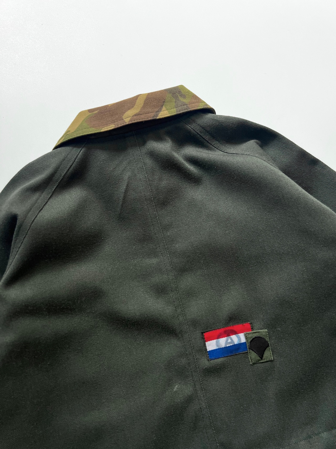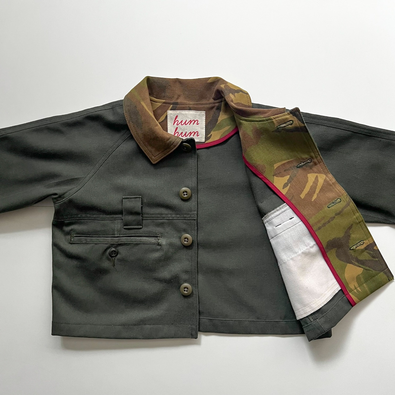 衿や見返しはUsedのミリタリージャケットから生地を取り、組み合わせました。