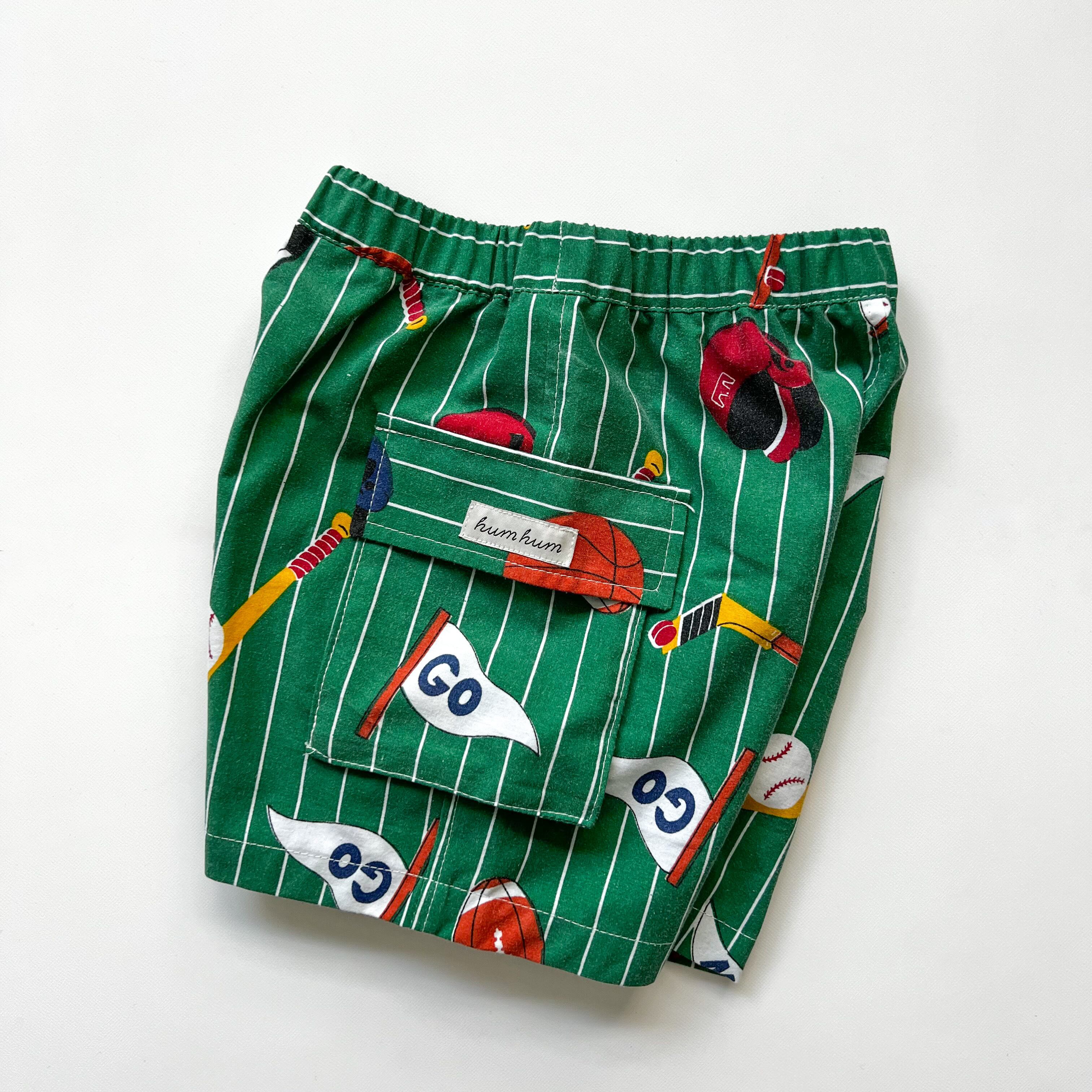 こんなのが欲しかったを詰め込んだ、カーゴショーツを作りました。生地はバスケ、サッカー、アメフトなどなど色んなスポーツのプリントがミックスされたvintage生地。サラッとした生地感も夏にぴったりです。ウエスタンはゴムでとても楽ちん。