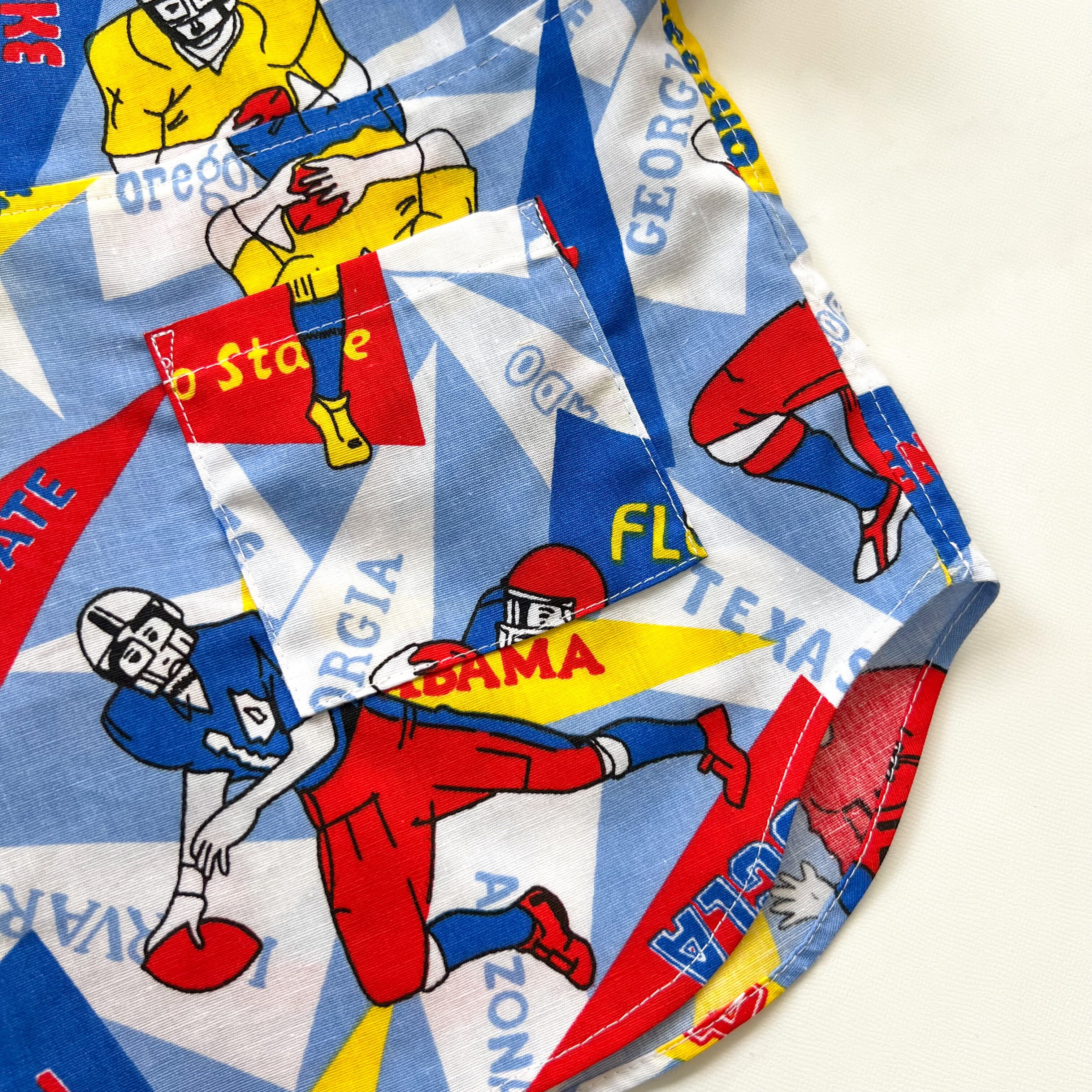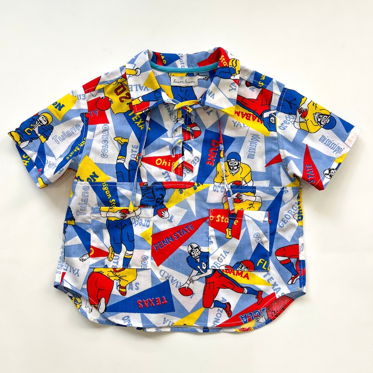 アメリカで熱狂的な人気を誇る、プロアメリカンフットボールリーグNFLのvintage生地を、キッズサイズのレースアップシャツにリメイクしました。