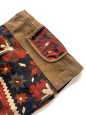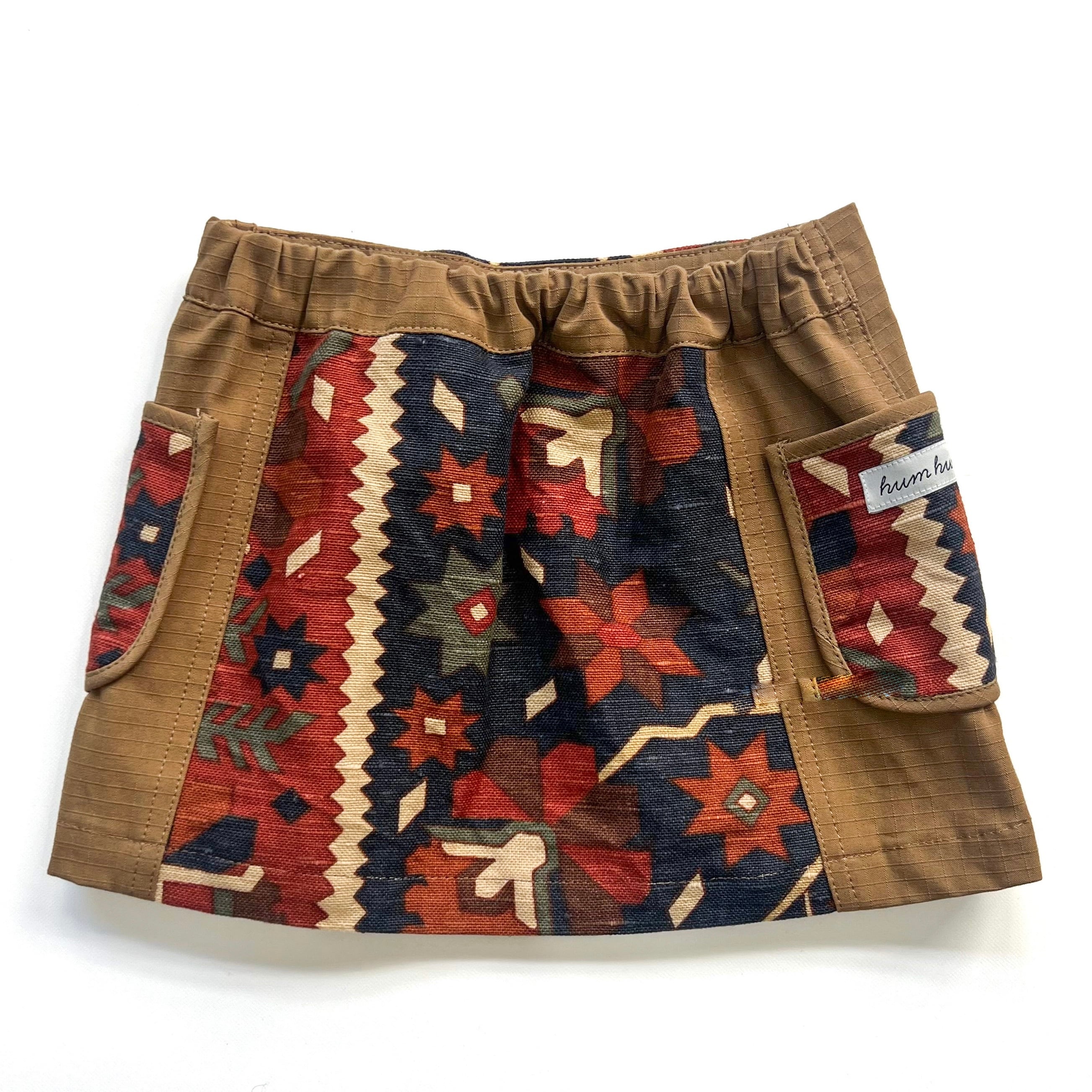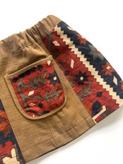 ちょっと渋めな色味がコーディネートの幅を広げてくれます。サイドポケット付きなのもポイントに。下にリブタイツを重ねたり、パンツの上から重ねるとエプロン風になってまた可愛い。