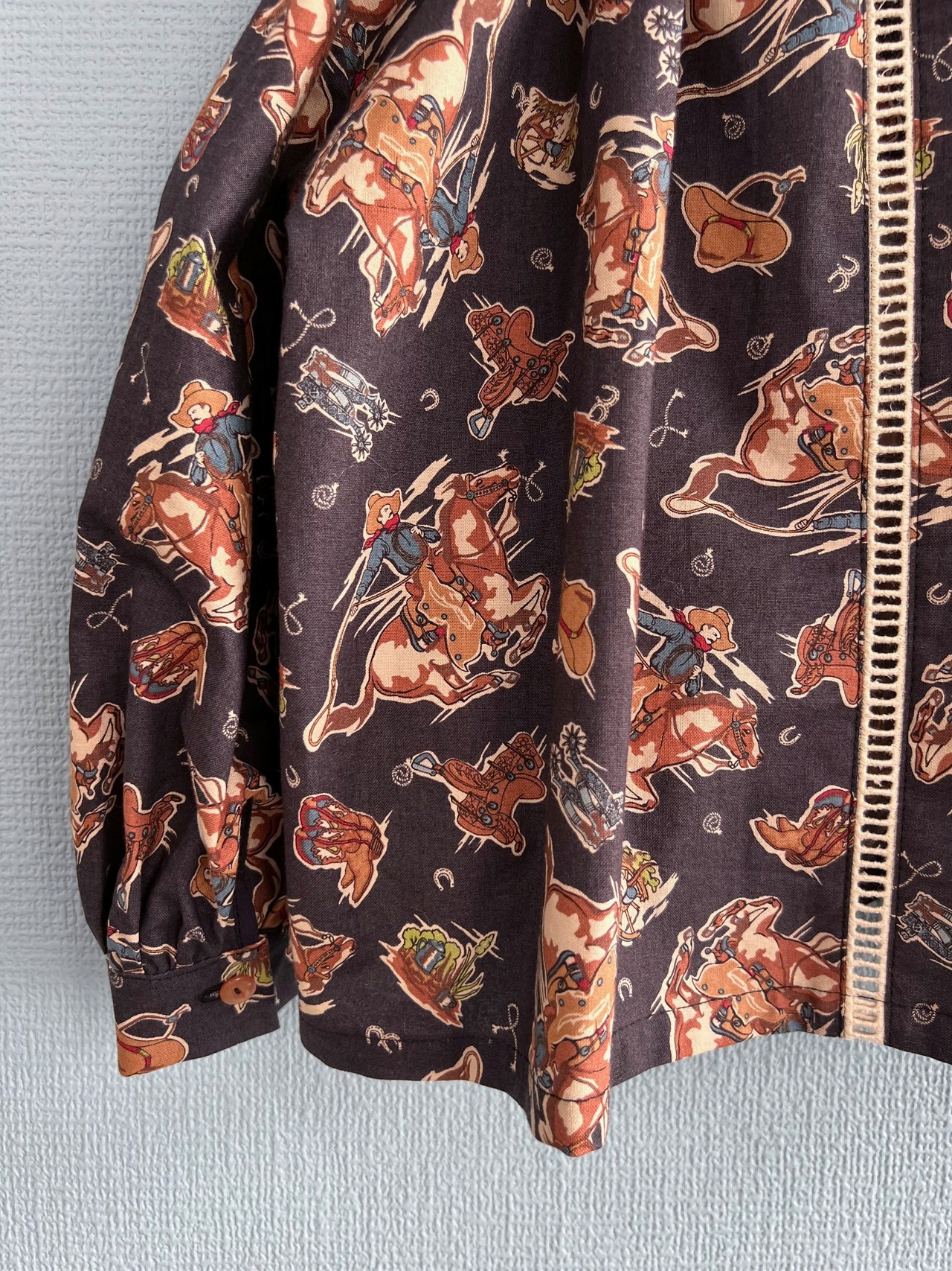 袖口はシングルカフスに。柔らかなシルエットの中に、カチッとしたメンズっぽいエッセンスを入れました。渋いです〜。