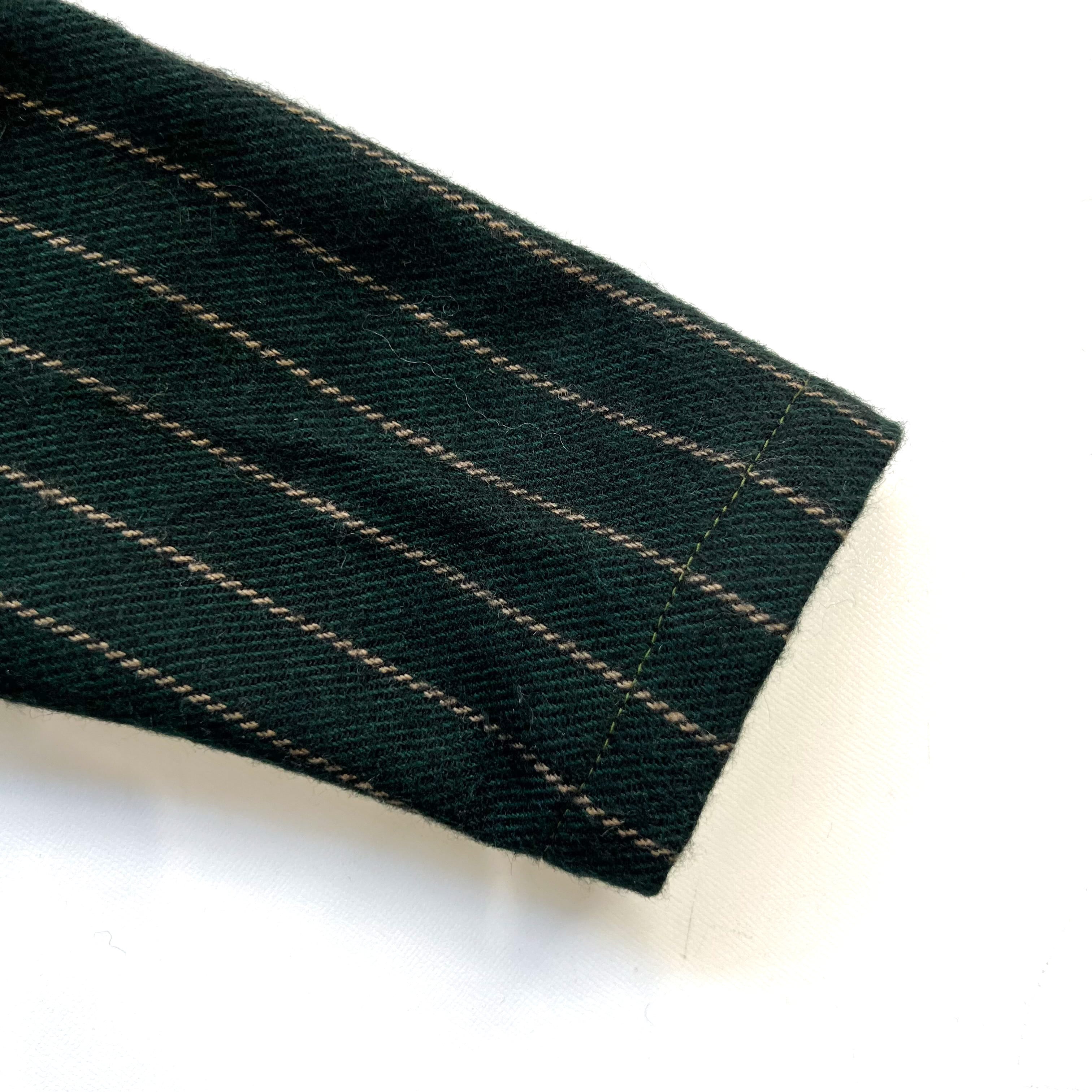 シャツよ雰囲気に合わせた、ミリタリーボタンもポイント。シャツのような軽やかさがありつつ、ジャケットのようなきちんとした感もある。良いとこどりのシャツジャケット。