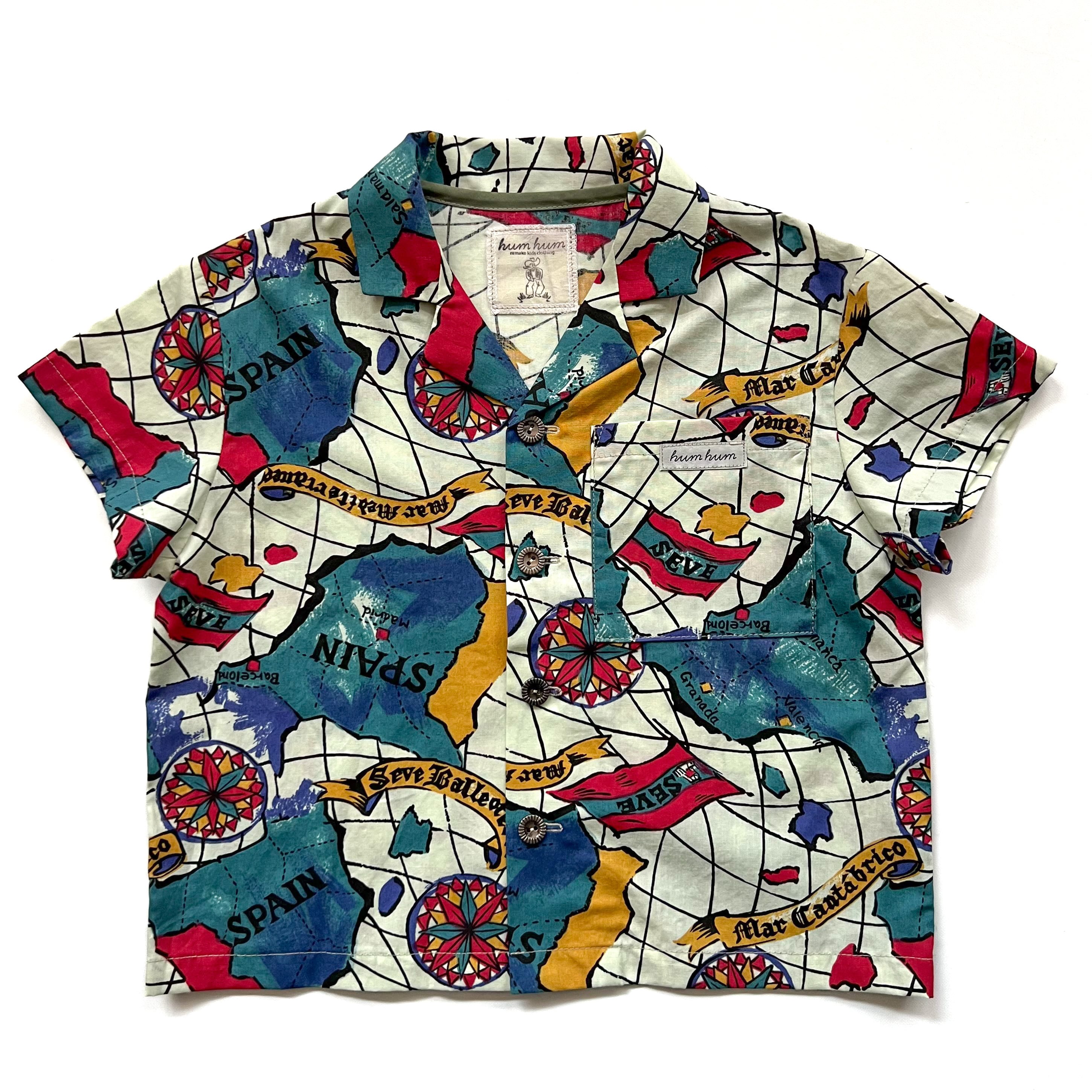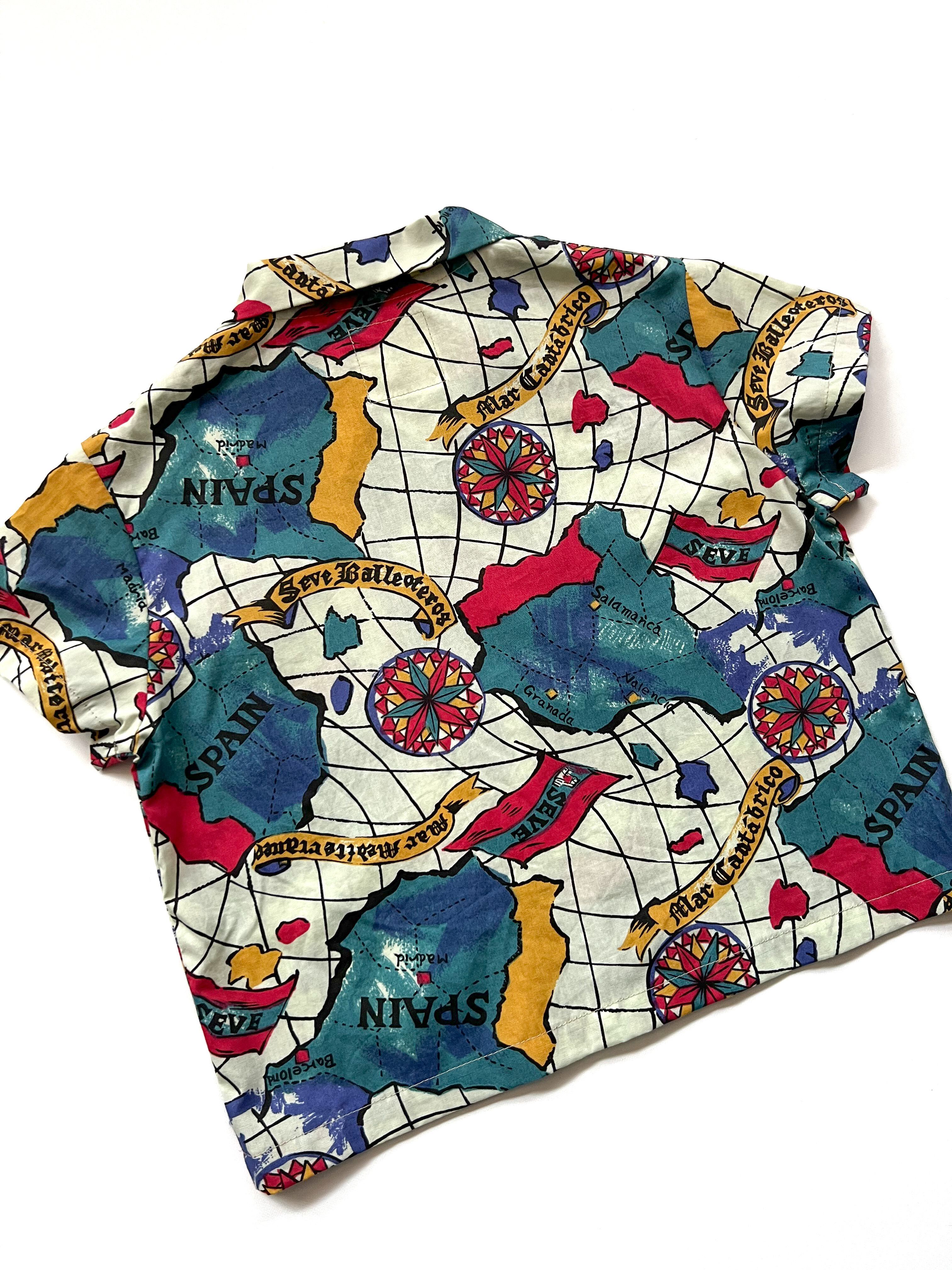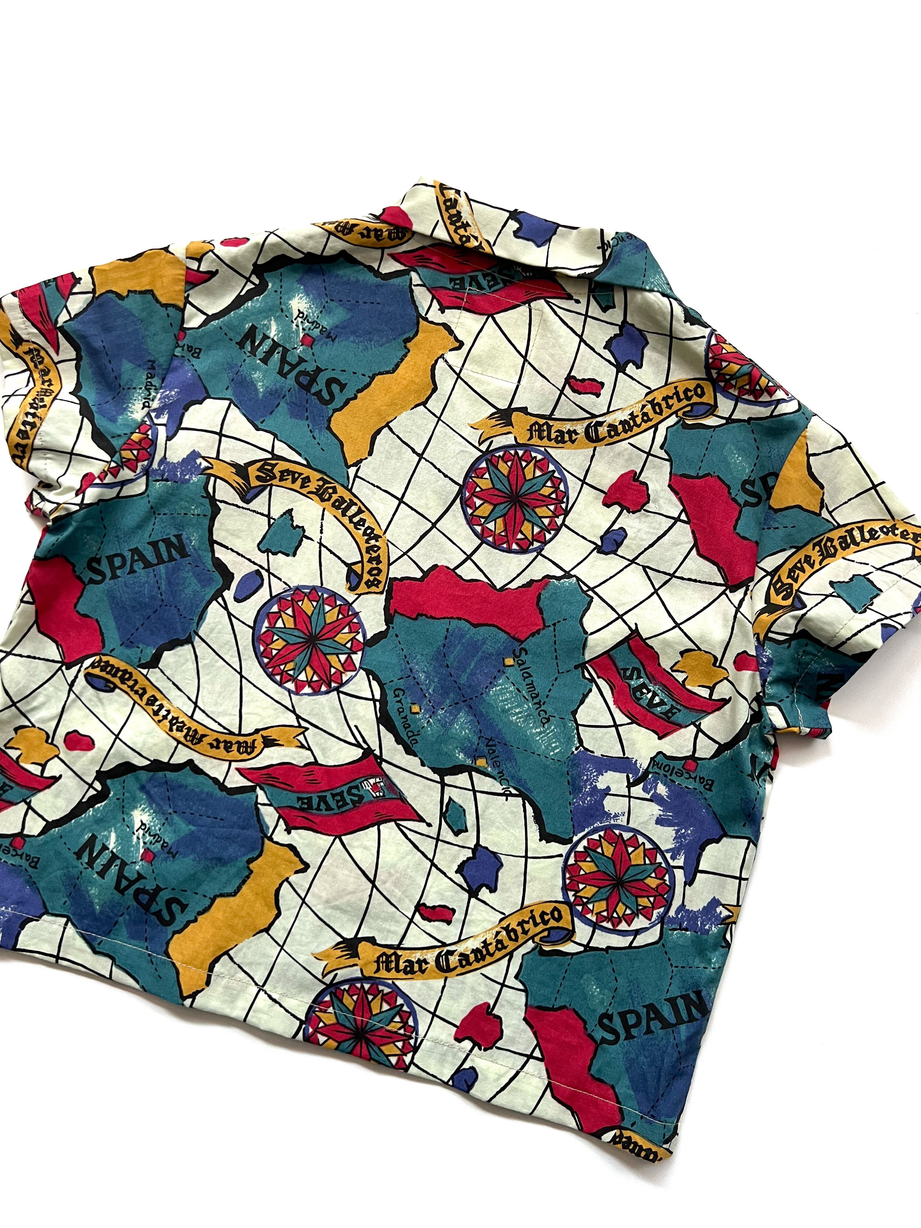 スペインの地図柄の生地を半袖の開襟シャツにリメイクしました。