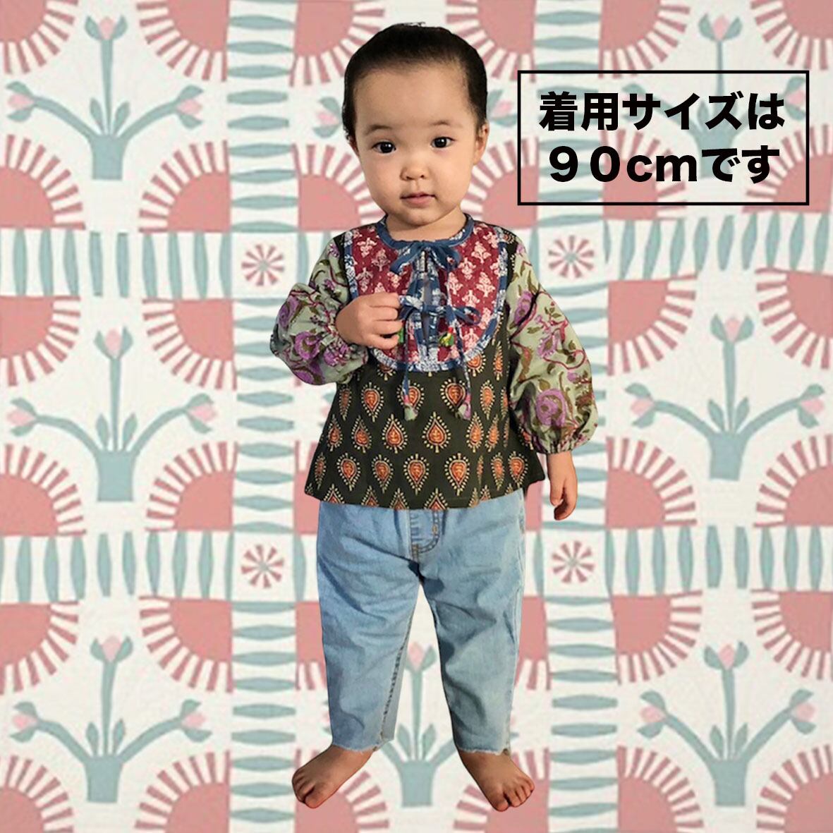 5種類のインド綿生地をミックスして、100サイズのブラウスを製作しました。