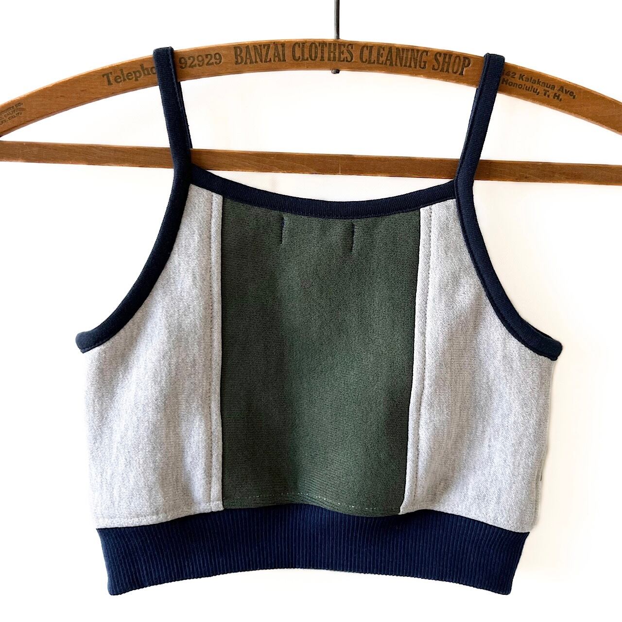 2枚のvintageスウェットを使って、90サイズのビスチェにリメイクしました。あるようでなかった、可愛らしすぎない渋いビスチェ。