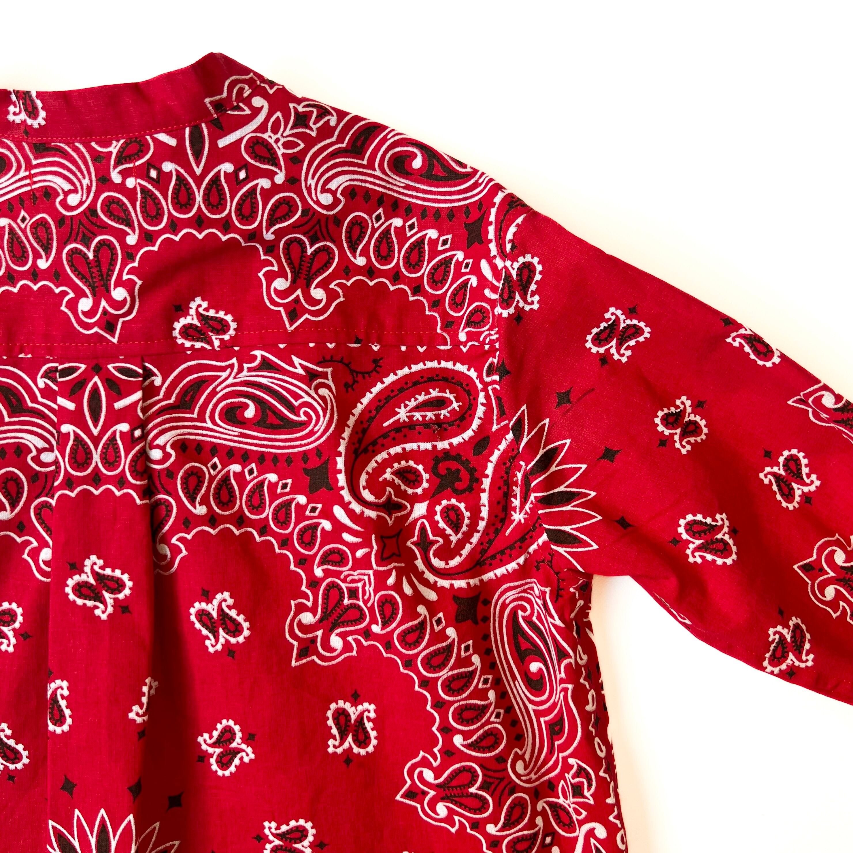 裁断前のUSAバンダナ生地を使って、プルオーバーのレースアップシャツを制作しました。