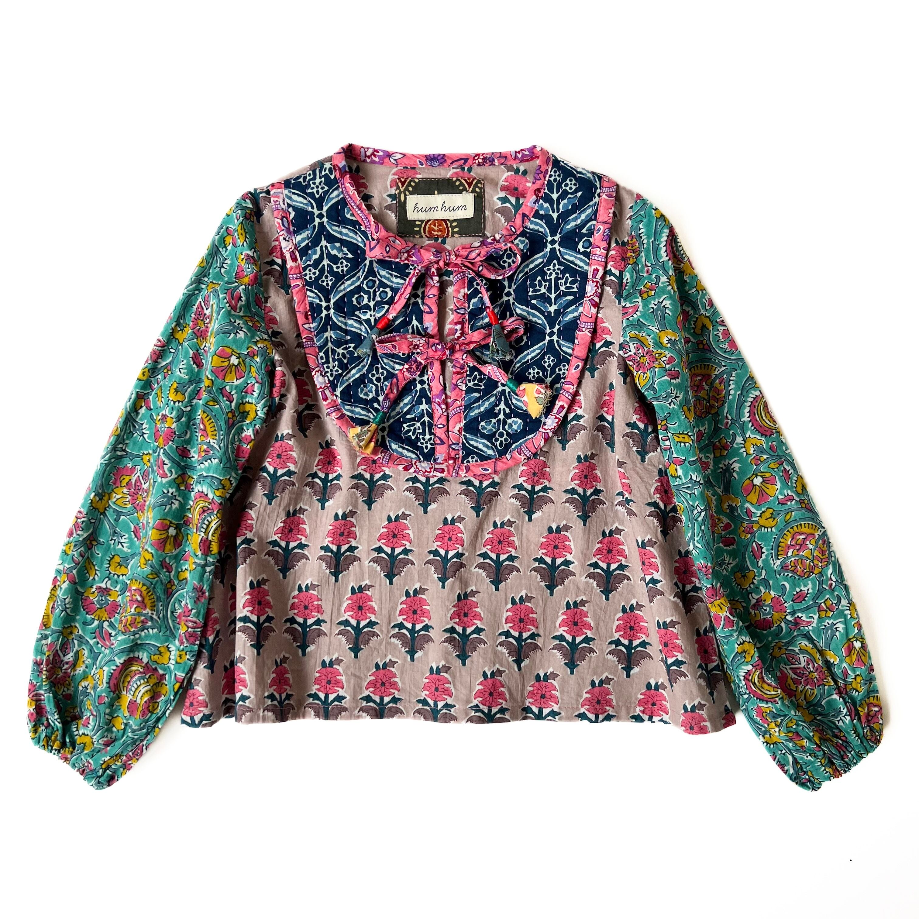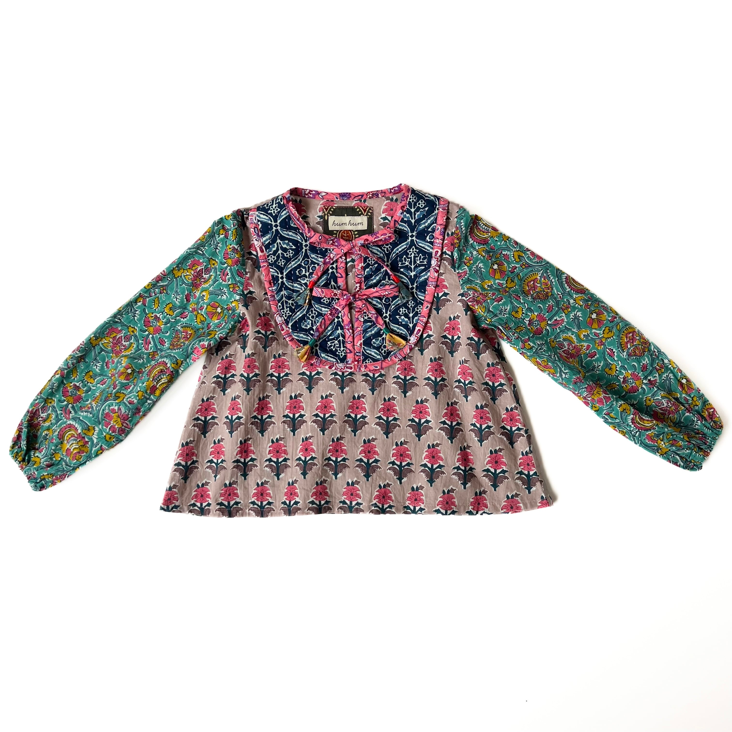 4種類のインド綿生地をミックスして、110サイズのブラウスを製作しました。