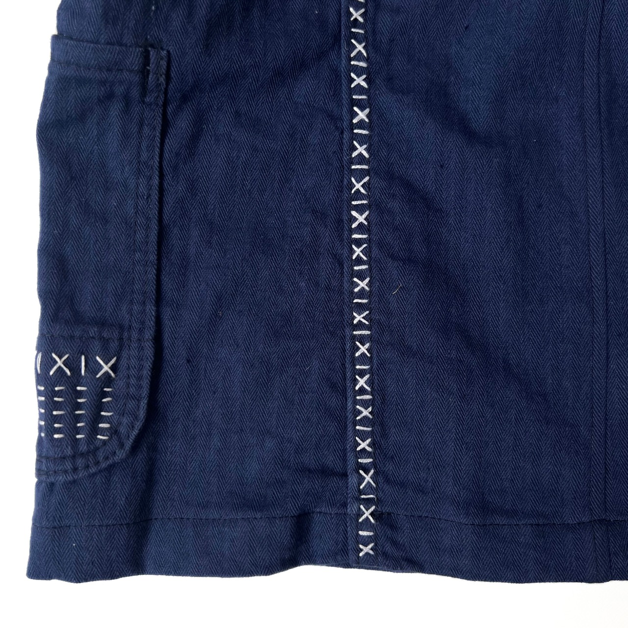 ワークシャツ特有の濃いネイビーのヘリンボーン生地が非常に渋い。雰囲気のある1枚となっています。