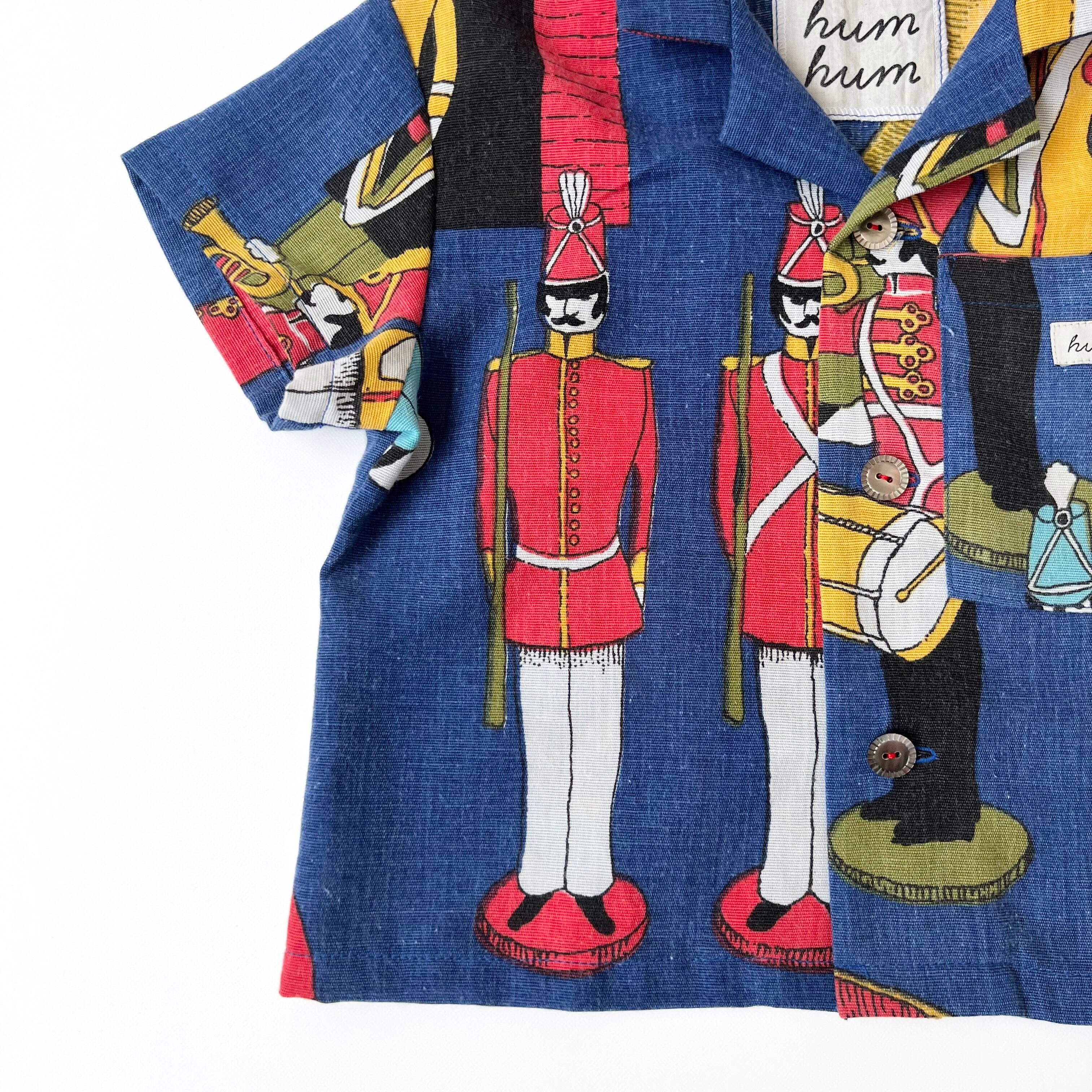 イギリス近衛兵をプリントした、vintage生地を半袖の開襟シャツにリメイクしました。