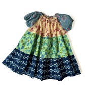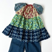 4種類のインド綿生地をミックスして、100サイズのティアードワンピースを製作しました。