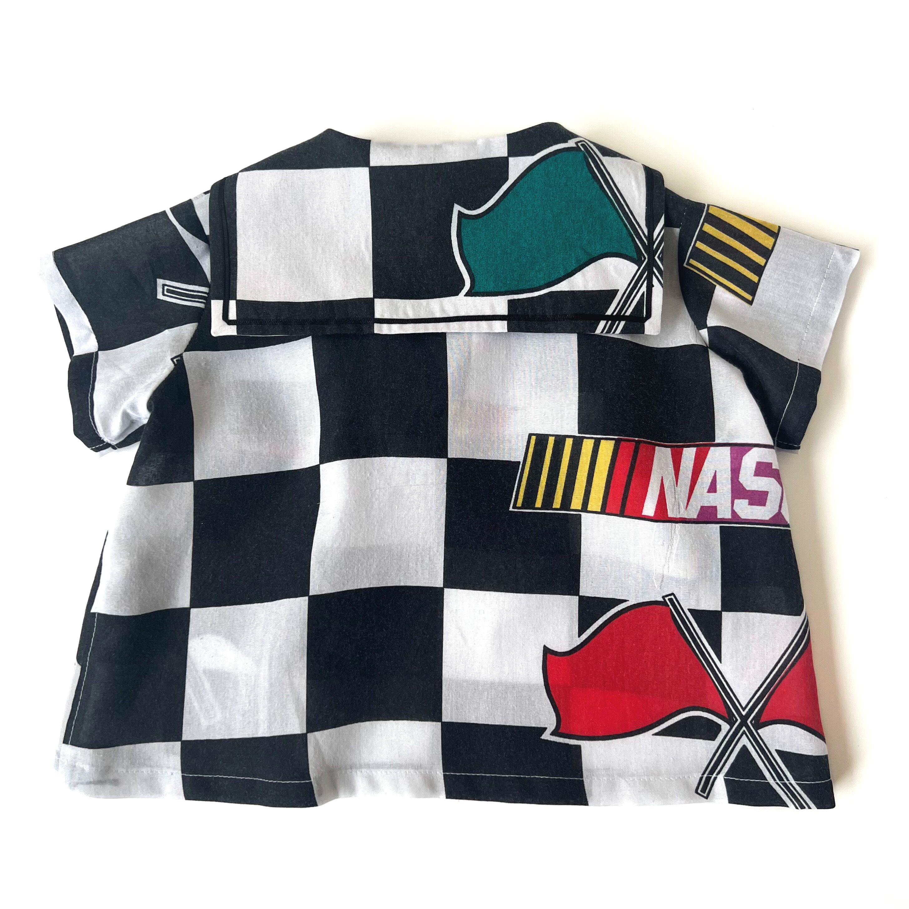 選んだ生地は全米を熱狂させるNO.1モータースポーツNASCARのチェッカー柄のvintage生地です。