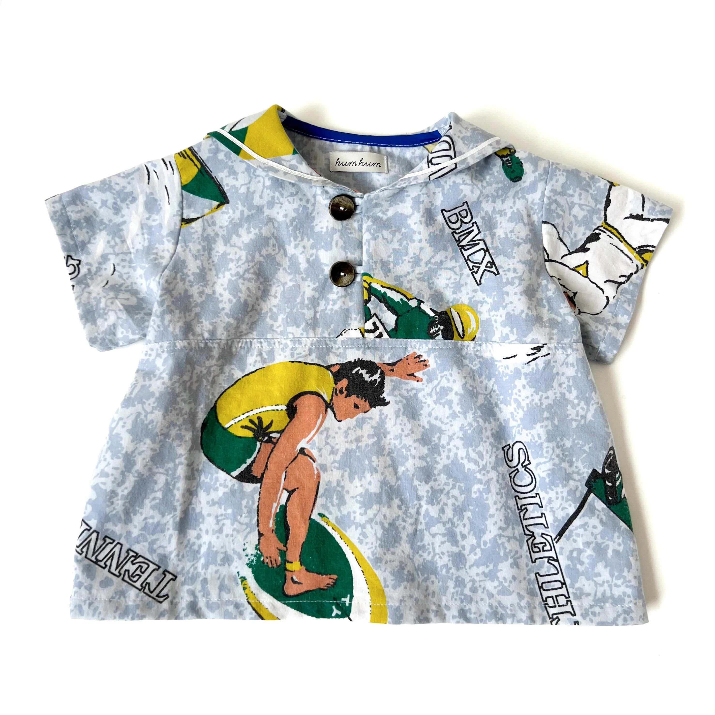 セーラーカラーっぽくない生地の、セーラーカラーシャツが欲しくて、製作しました。