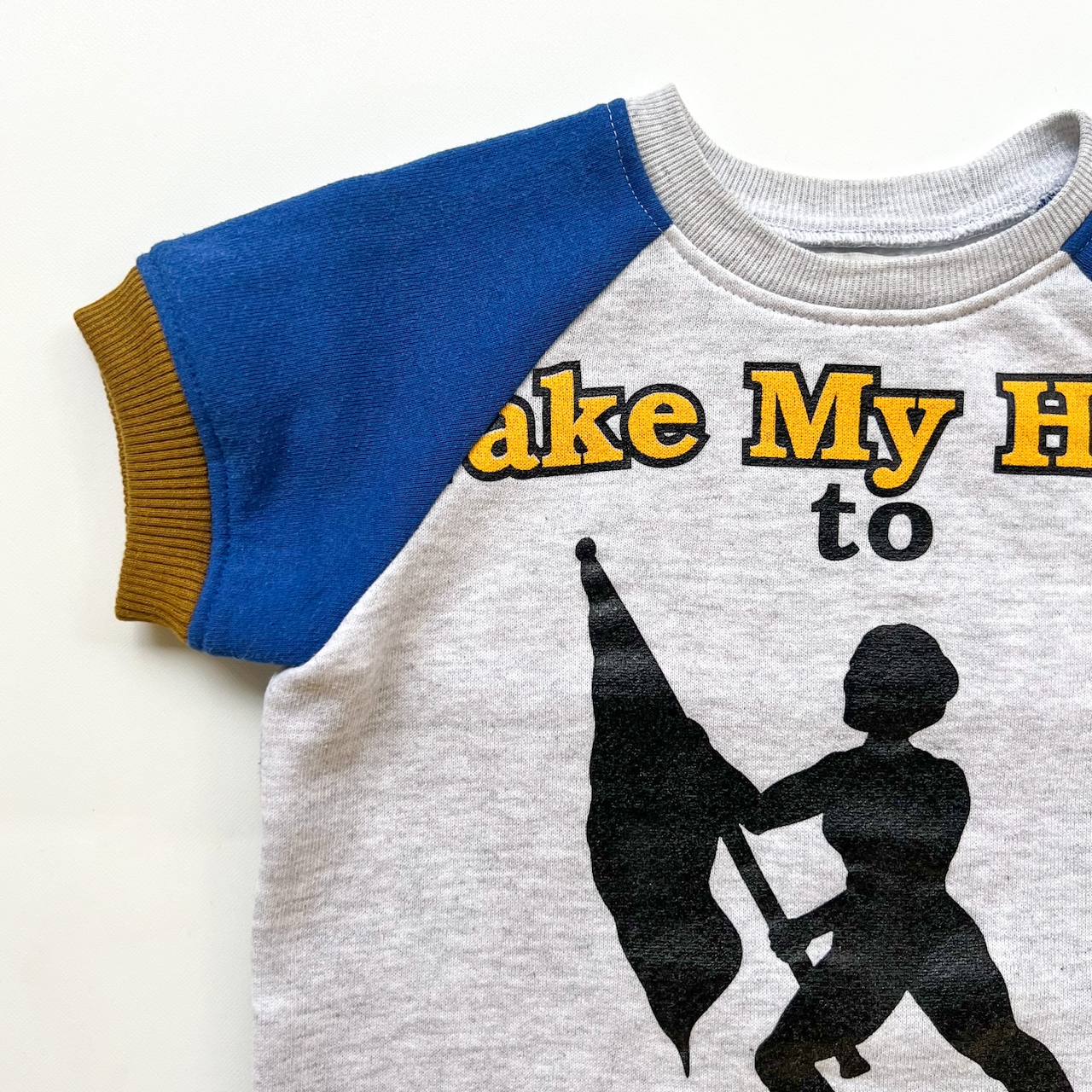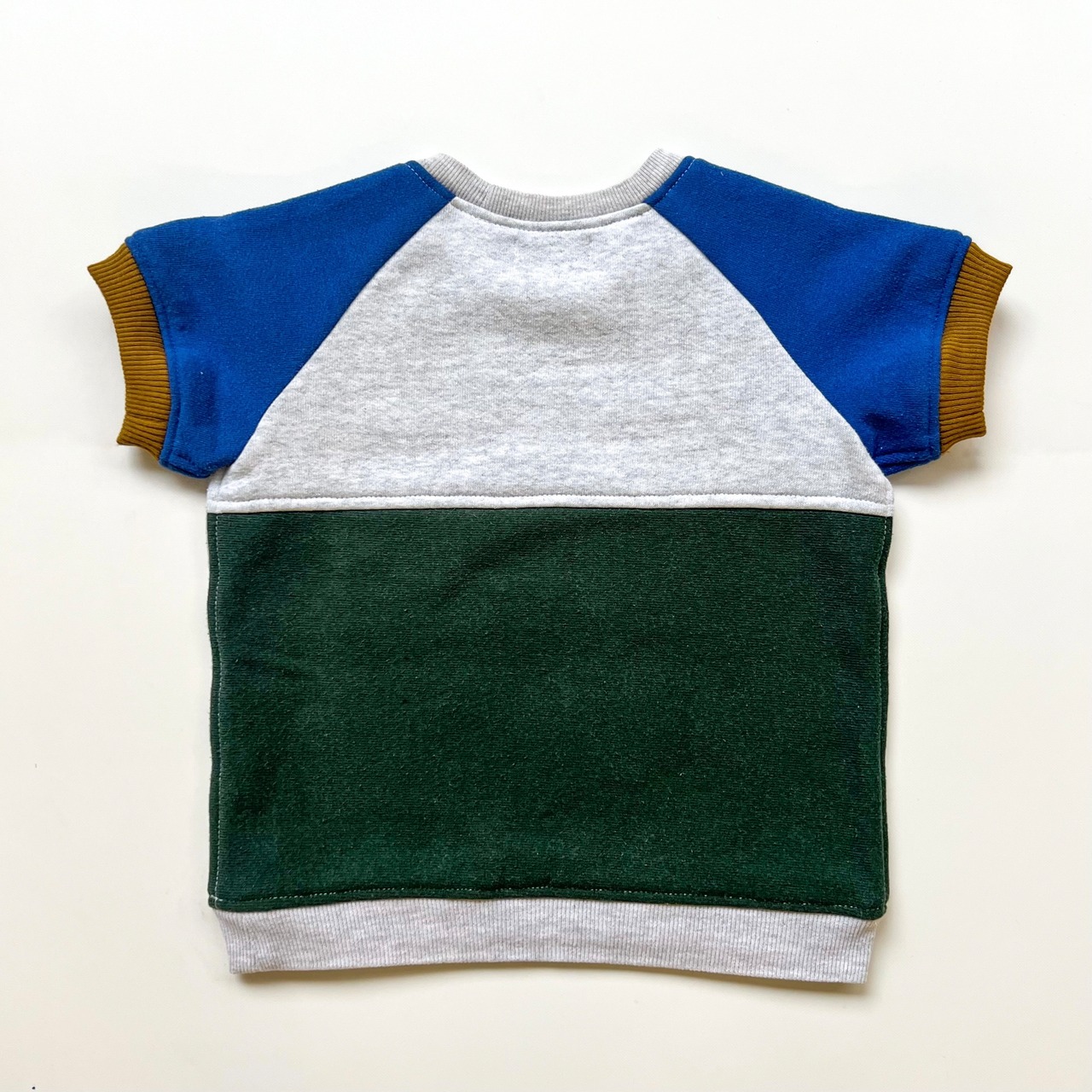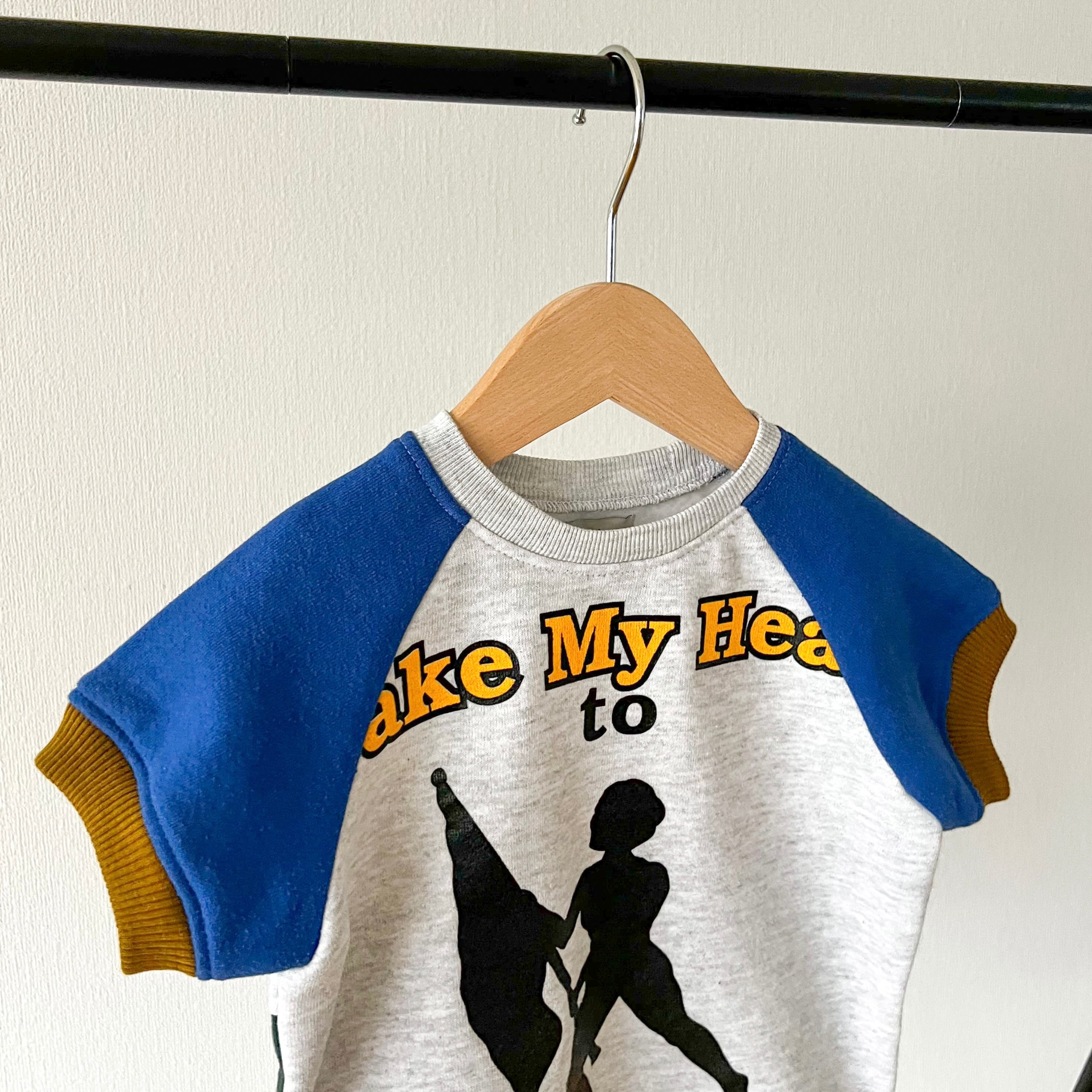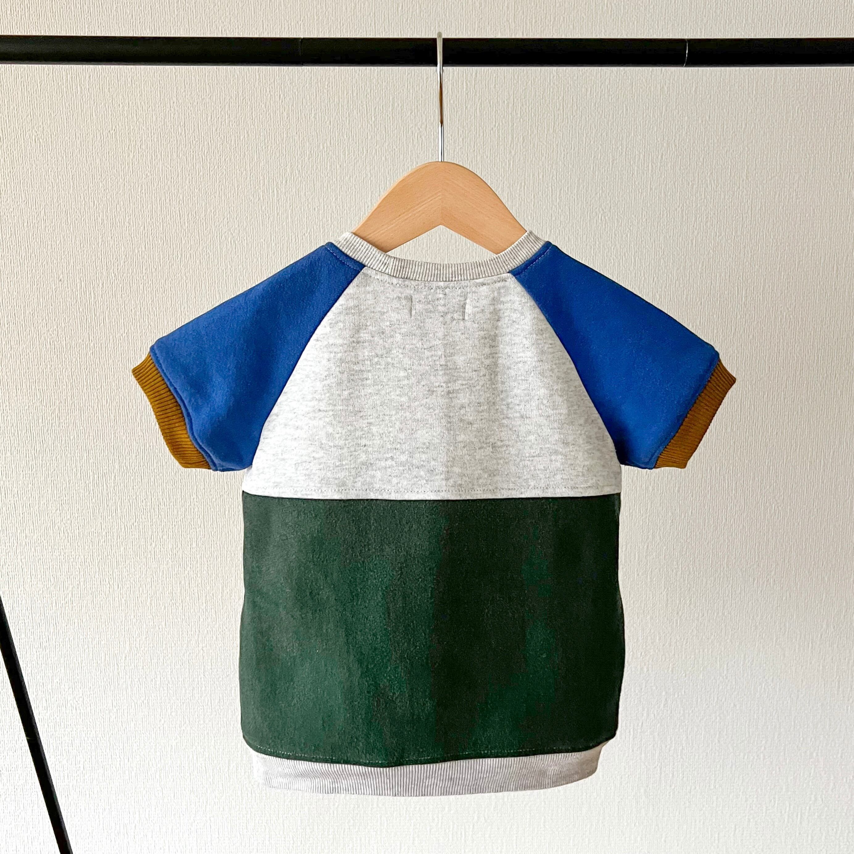 大人サイズのカレッジスウェットを、キッズサイズの半袖スウェットにリメイクしました。