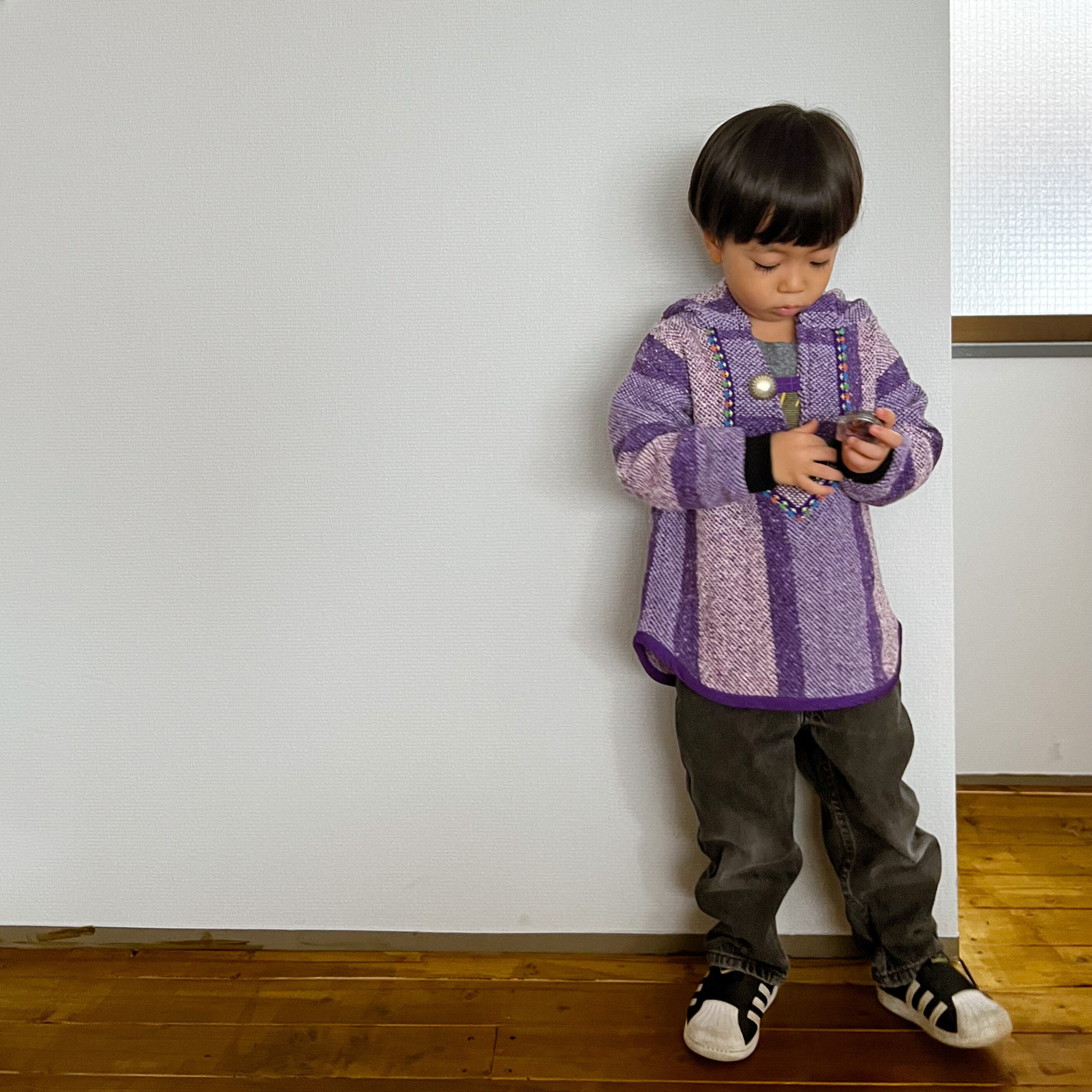大人サイズのUSEDメキシカンパーカーを1度解体し、110サイズにリメイクしました。