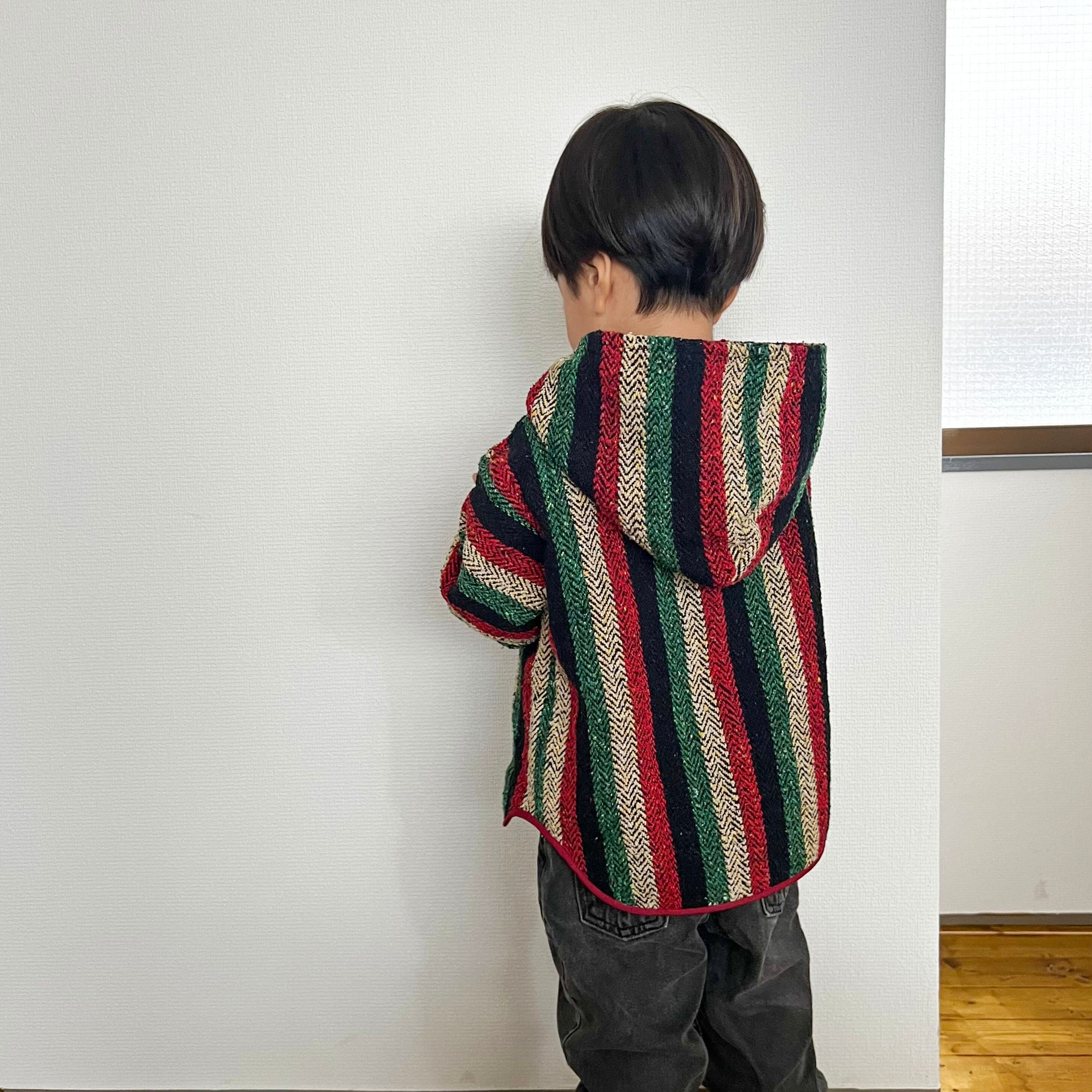 大人サイズのUSEDメキシカンパーカーを1度解体し、110サイズにリメイクしました。