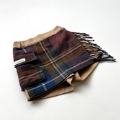 シックな雰囲気に仕上がったチェック柄のラップパンツです。前から見るとスカート、後ろから見るとショートパンツ。デザイン性もありますが、とても動きやすいです。前見頃のスカート部分はUSEDのドイツ製のストールから生地を使い、ストールのフリンジ部分を活かしました。