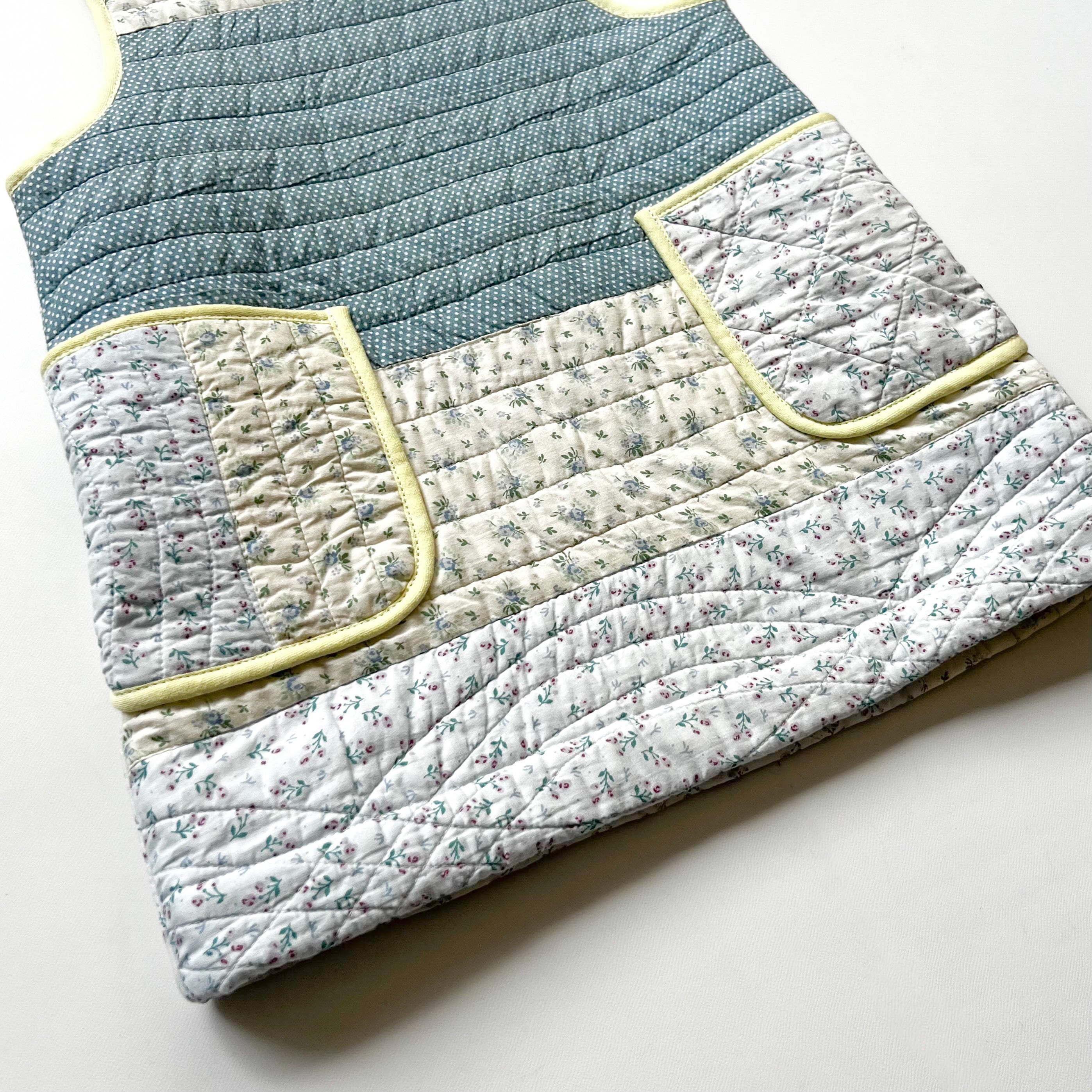vintageのキルティングクロスを、100サイズのジャンパースカートにリメイクしました。