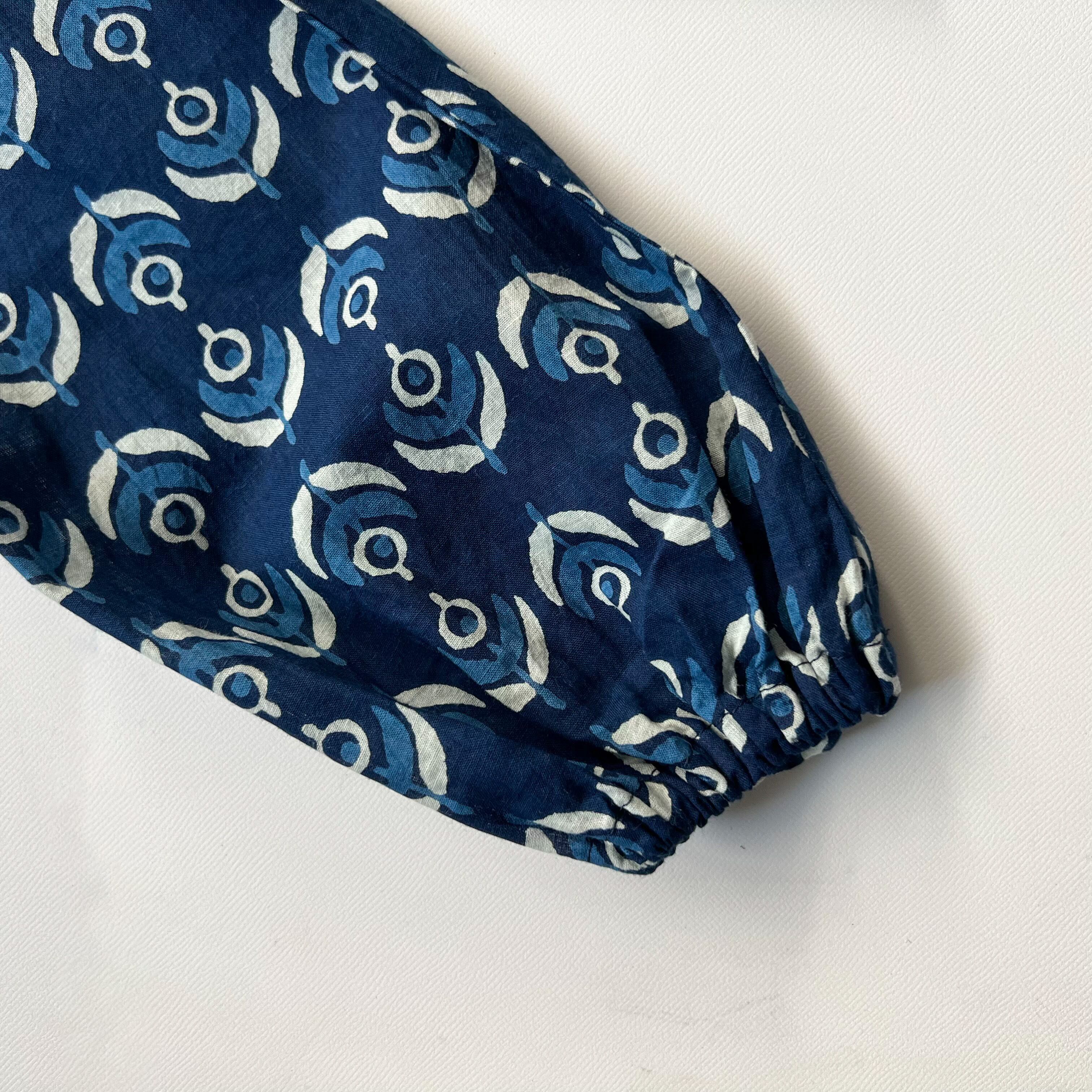 vintageのインド綿ブラウスからインスピレーションを得て、キッズサイズがあったら絶対に可愛い!という思いで、4種類のインド綿をミックスしたブラウスを製作しました。